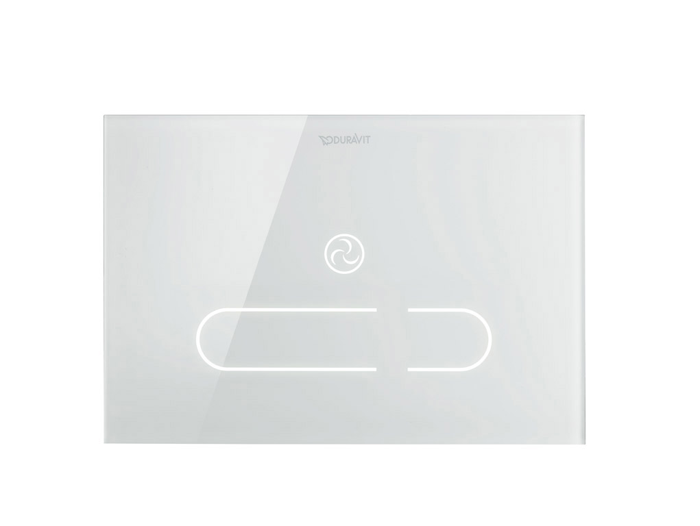 The electronic A2 toilet actuator plate made from white tempered safety glass is surface-mounted. The plate is not illuminated in standby mode. An infra-red sensor activates the illumination of the symbols when they detect movement close by.