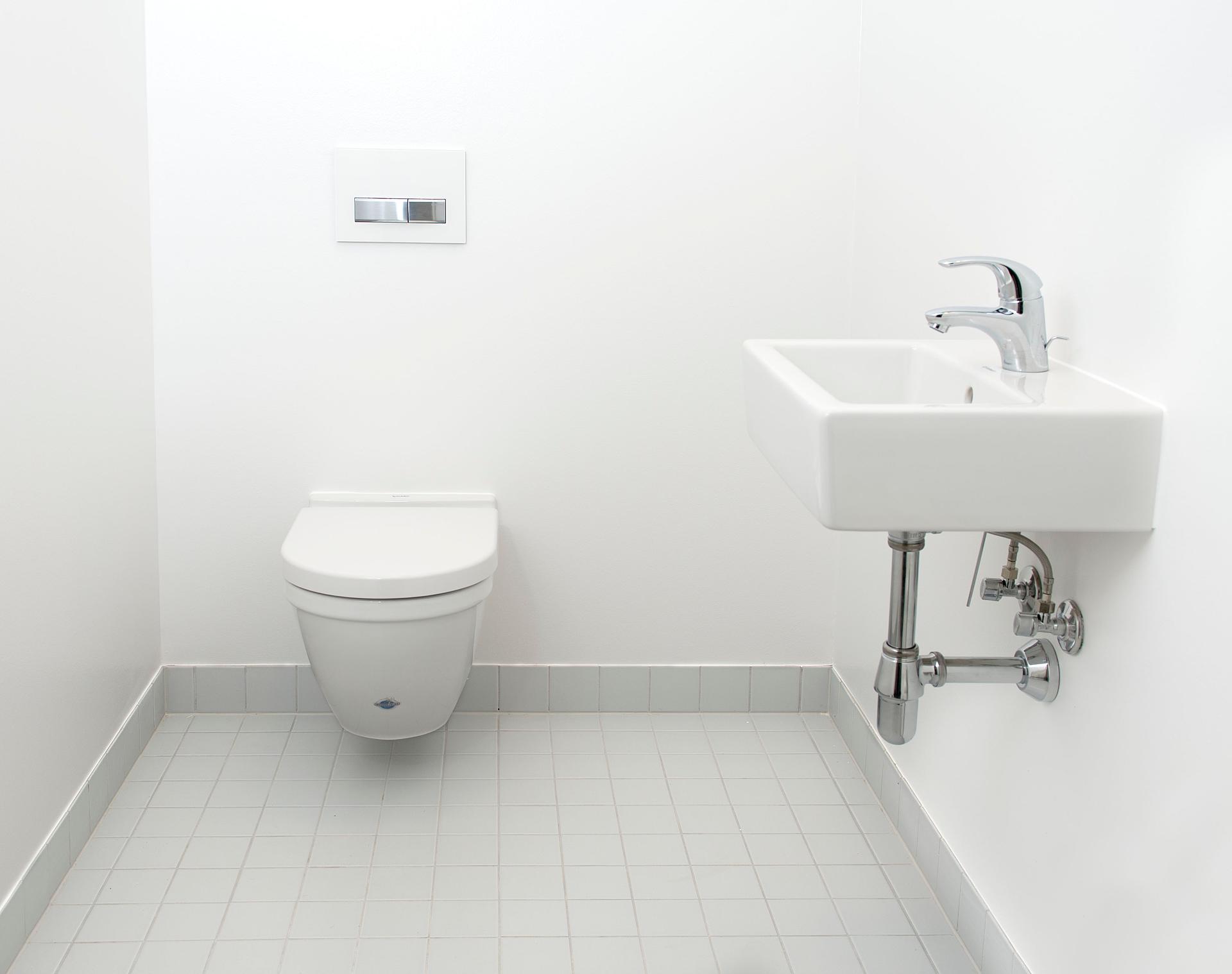 Không gian xung quanh bồn cầu được giữ sạch sẽ, khô thoáng và ngăn nắp