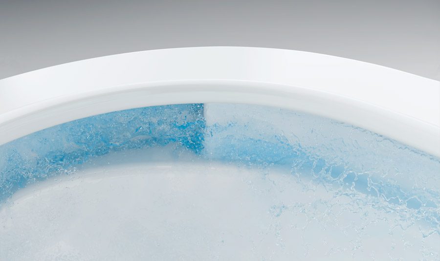 Two offset openings ensure that the powerful HygieneFlush flushing flow is set in rotation. This ensures that the entire inner surface of the toilet is optimally cleaned. Independent tests also confirm the efficiency of this new type of surface flush.