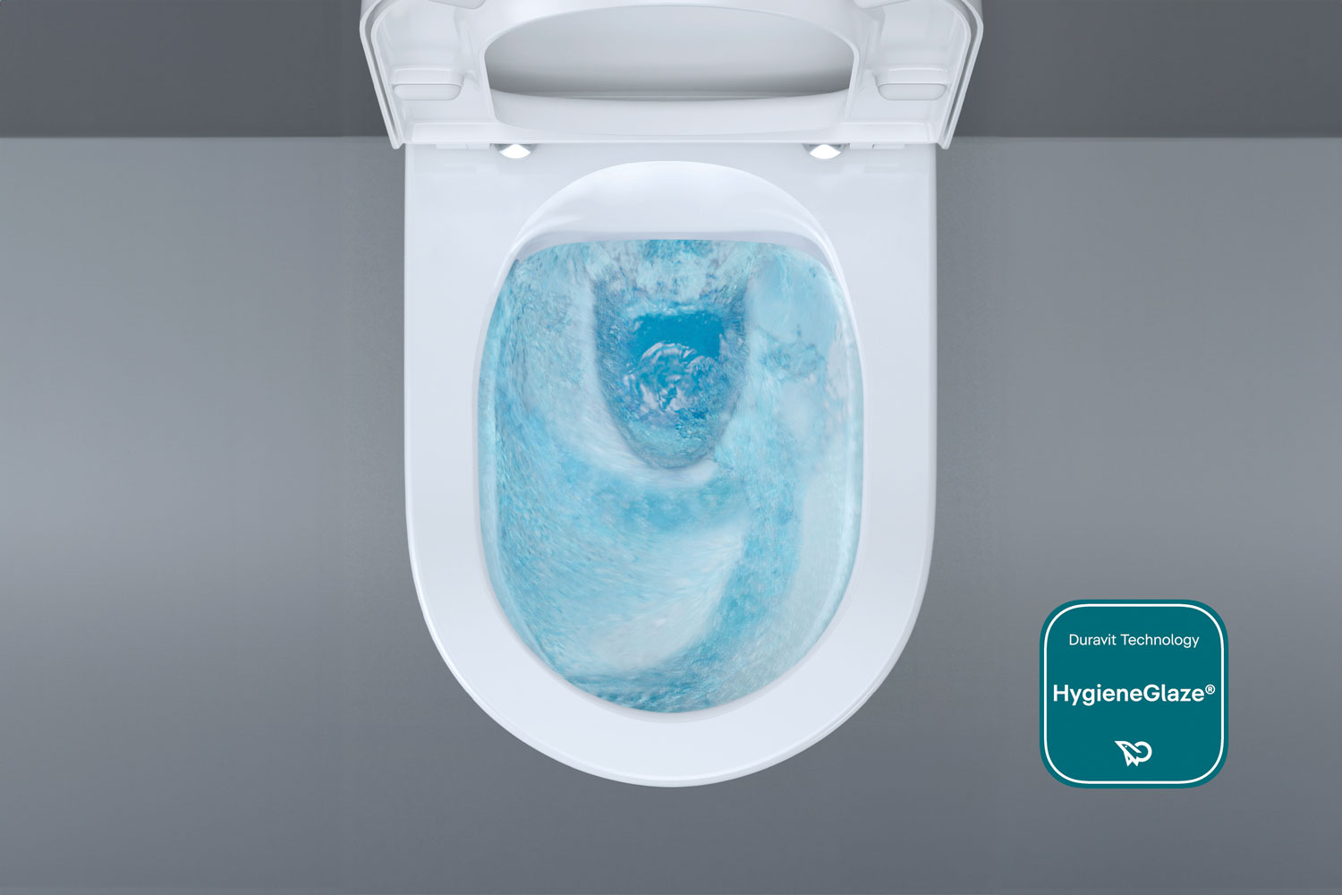 A clean result thanks to the best performance. A new era of cleanliness starts with HygieneFlush. The innovative flushing technology developed by Duravit is impressive with its extremely powerful flushing flow, as it cleans the entire inner surface of the toilet perfectly, with no splashes.