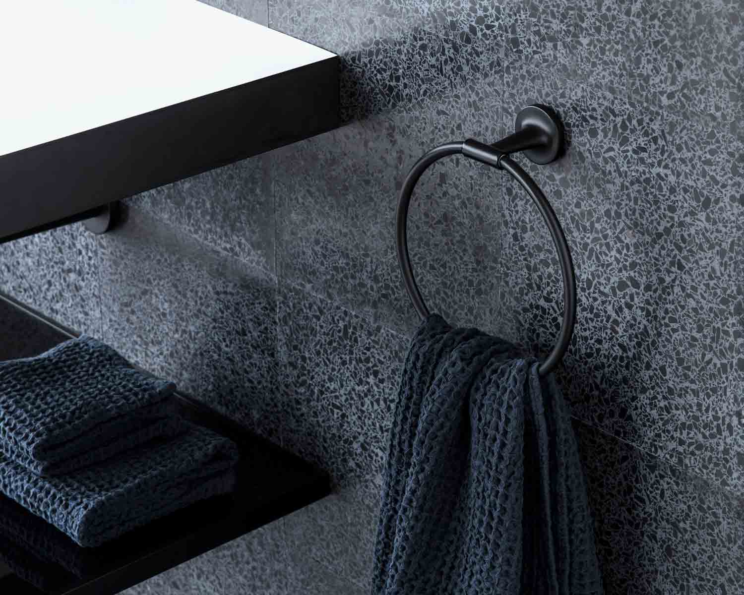Simple or striking, as a rail or as a ring – there are a number of different options for towel holders that can affect the overall character of your bathroom. The choice between matte black, metallic or gold and bronze finishes is another way to add some variety.