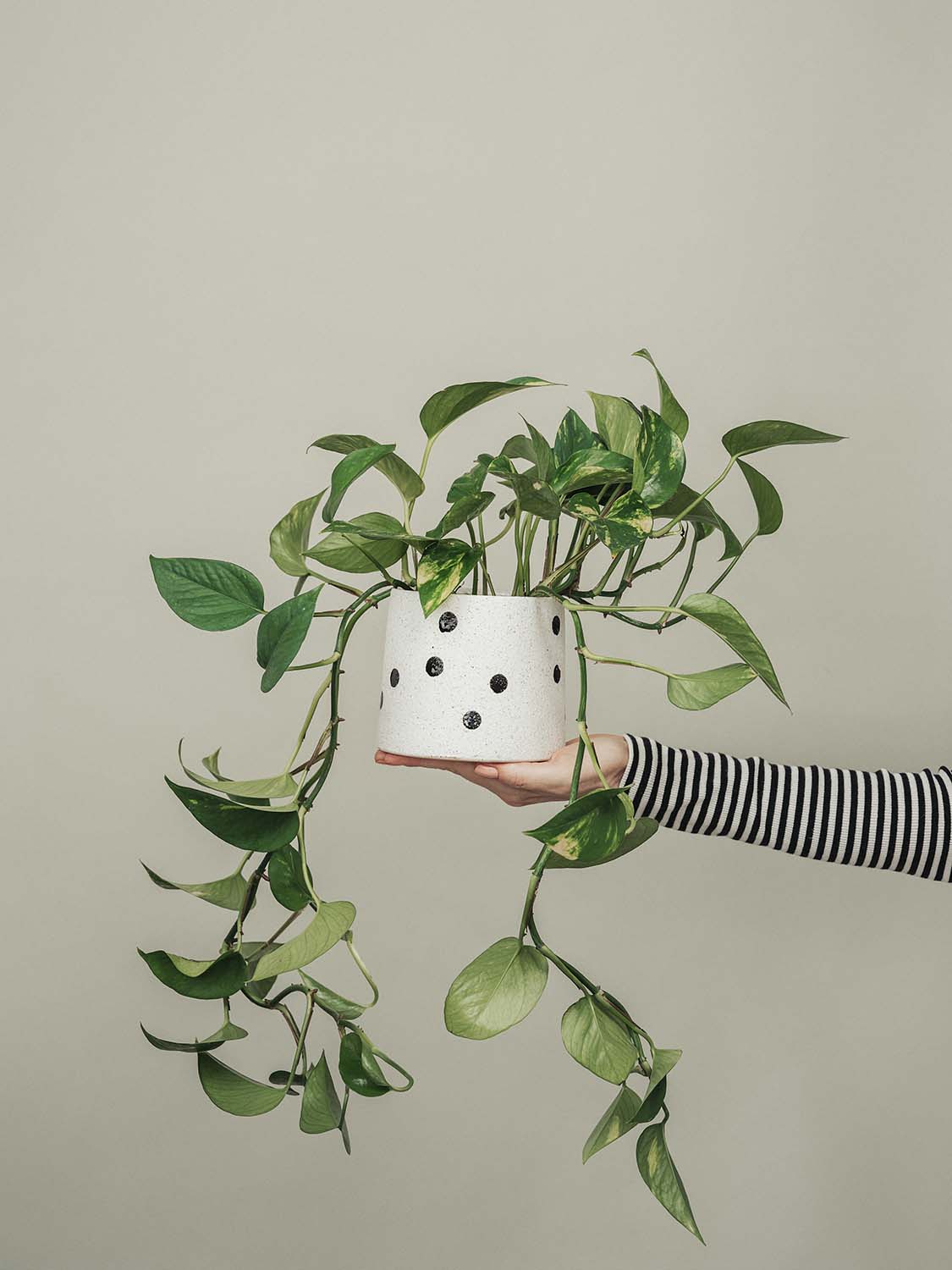 Pothos also thrives in partial shade. It is also a practical solution if you are looking for plants for a bathroom with space constraints. Its trailing overgrowth makes it an excellent candidate for creating an especially aesthetic accent as a hanging plant in your bathroom. Make sure not to water it too frequently or too much, as it doesn't tolerate overwatering well.