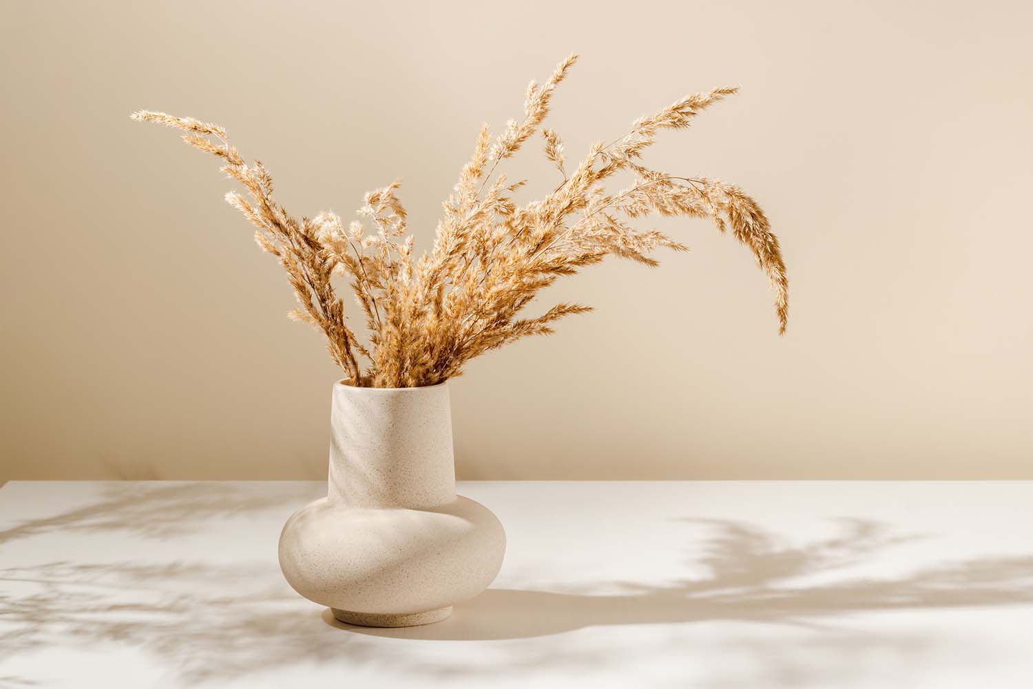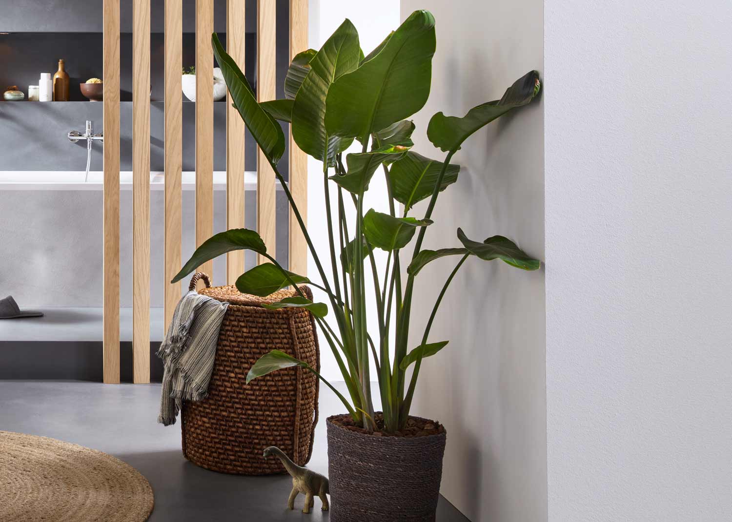 Just like artificial plants, dried plants don't need any soil, light or water. They are nevertheless real plants that have been preserved through gentle drying. Though the aesthetic impression is a bit different, they can work really well in certain combinations, especially in more minimalist bathrooms.