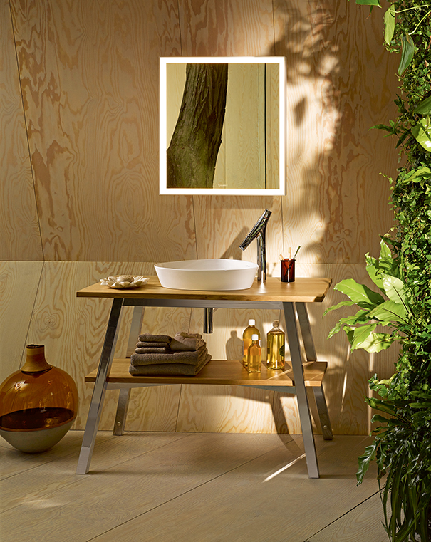 Một lựa chọn nổi bật đến từ Duravit là gương Aurena, thuộc bộ sưu tập Aurena và nằm trong phân khúc Artisan Lines. Thiết kế tinh xảo với đèn LED cảm ứng tích hợp mang đến ánh sáng hài hòa cho không gian phòng tắm. Bề mặt trắng mờ kết hợp cùng đường nét tối giản giúp chiếc gương trở thành điểm nhấn ấn tượng cho bức tường, phù hợp với tinh thần nhẹ nhàng và thanh thoát của phong cách Địa Trung Hải.