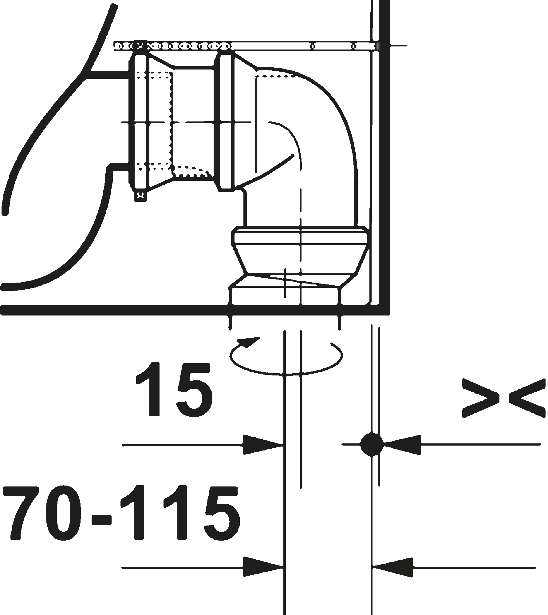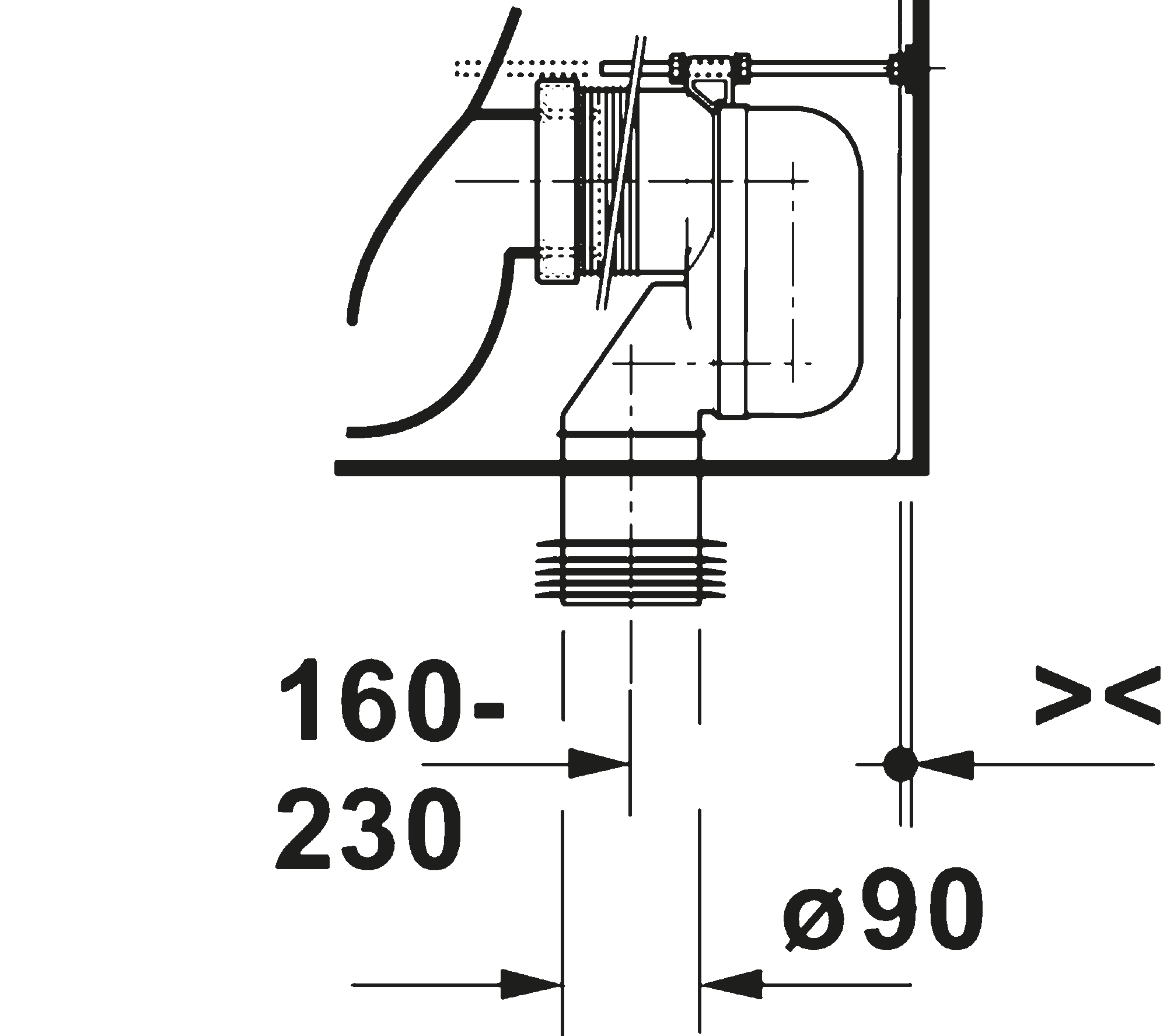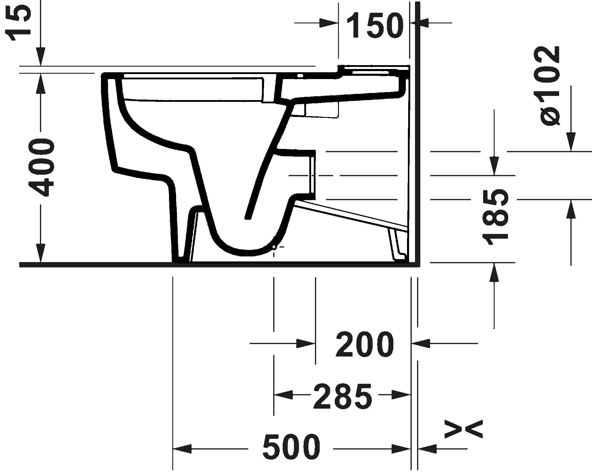 DuraShield, Washdown model, Rimless, Outlet drain: horizontal, Position outlet: Back, Wall, Flush principle: ousting, For bowl mounted cistern, Incl. mounting material, Outlet dimensions for Vario connecting bend vertical: 160 mm - 230 mm, Outlet dimensions for Vario outlet set vertical/horizontal: 70 mm - 170 mm, Unified Water Label (UWL) Class: 1