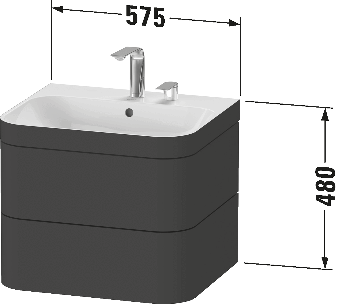 c-bonded set wall-mounted, HP4635O8080 Graphite Super Matt Decor, Set article: c-bonded washbasin, Colour ceramic: White High Gloss, Number of faucet holes per wash area: 1, Overflow: Yes, Tap hole platform: Yes, Incl. ceramic drain cover, incl. push-open waste, Incl. faucets: No