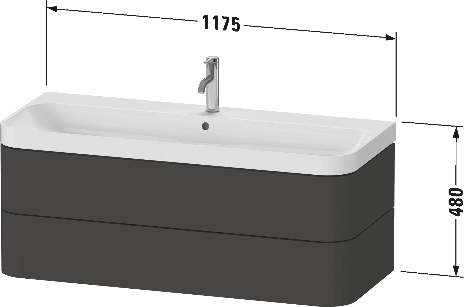 c-shaped set wall-mounted, HP4349E80800000 Graphite Super Matt Decor, Set article: c-shaped washbasin, Colour ceramic: White High Gloss, Number of faucet holes per wash area: 2, Overflow: Yes, Tap hole platform: Yes, Incl. ceramic drain cover, incl. push-open waste, Incl. faucets: No