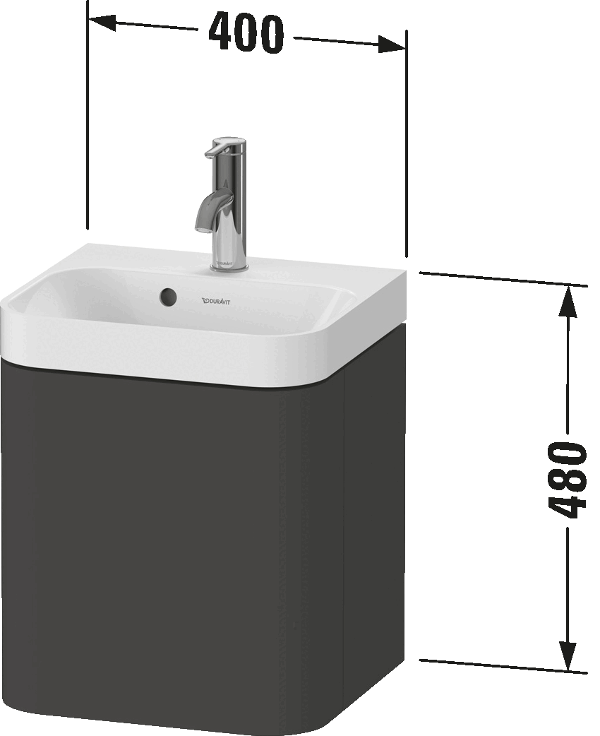 c-shaped set wall-mounted, HP4344O80800000 Graphite Super Matt Decor, Set article: c-shaped handrinse basin, Colour ceramic: White High Gloss, Number of faucet holes per wash area: 1, Overflow: Yes, Tap hole platform: Yes, Incl. ceramic drain cover, incl. push-open waste, Incl. faucets: No