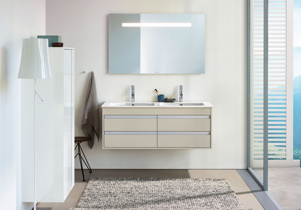 The Ketho vanity units – here in White matt – can be combined with washbasins from the Darling New, Vero and Starck 3 ranges.