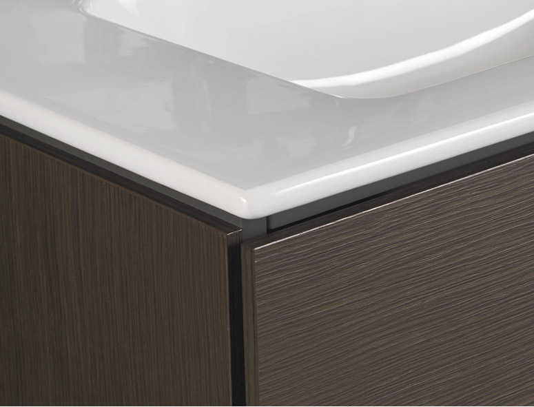 The Unique feature of this bathroom furniture series can be found in the details: the shadow gap between the countertop and the vanity units as a repeating element make handle-free surfaces possible and serve as recessed handles on tall cabinets and semi-tall cabinets. In addition to the shadow gaps, the successful interplay between minimalism and smart design provide a sense of visual lightness to L-Cube.
