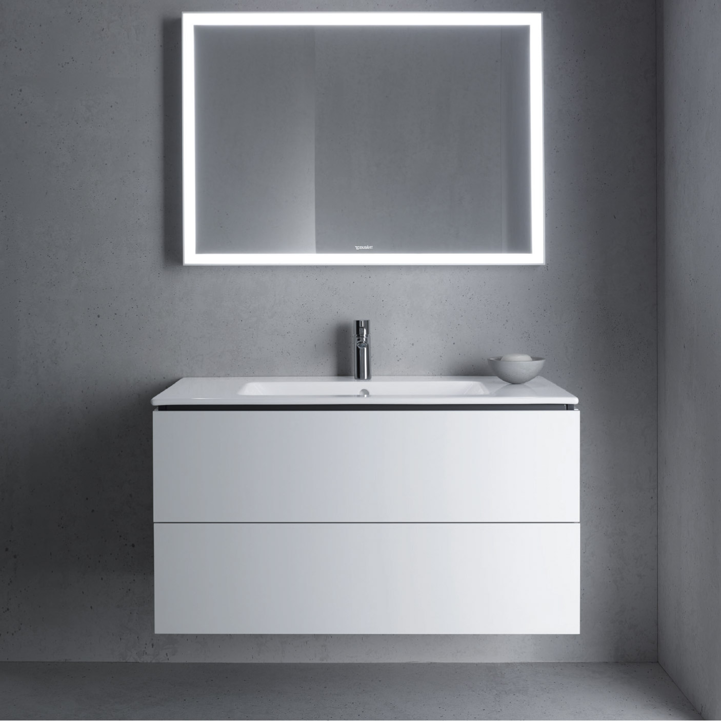 In addition to many useful functions, the L-Cube mirror cabinet offers even more space to store things. The LED light frame around the entire mirror can be switched on and off and dimmed via sensor. A socket is hidden behind the doors which have mirrors inside. Depending on individual desires and needs, the mirror cabinet can also be installed as a recessed version. It comes in four dimensions and matches perfectly with any Duravit ceramic series.