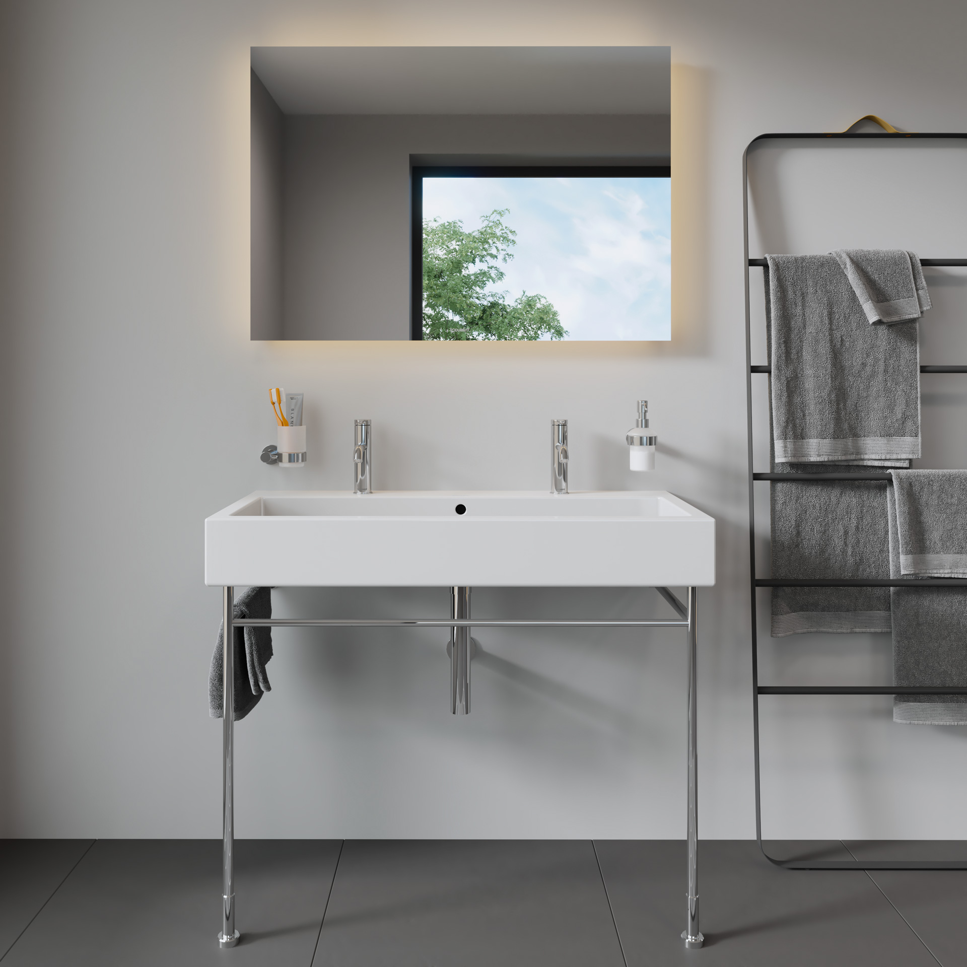 Simply chic: The Duravit Vero washbasin with designer siphon and chrome support frame is height-adjustable and has a surrounding rail that doubles as a towel holder.