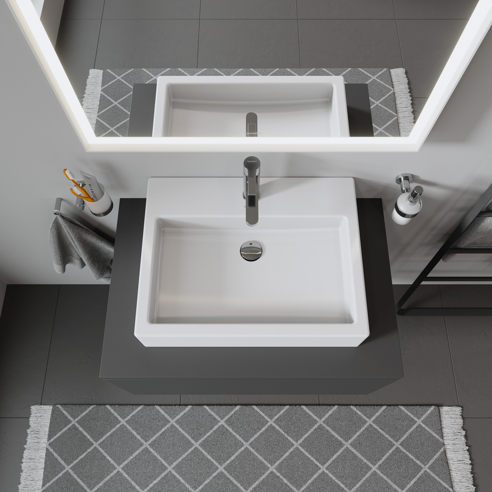 Duravit Vero and countertop basins with consoles or counters is an especially homey combination: As a built-in version with a tap hole bench, the Duravit Vero washbasin is inserted from above. The built-in washbasin can also be inserted from below into any material you can think of. A huge variety of combinations of the Duravit Vero ceramic series and vanity units are possible.