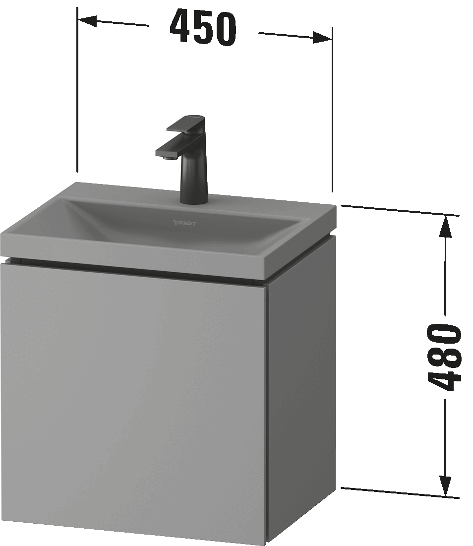 c-shaped set wall-mounted, VT6948OHDHD0000 Light grey Matt Lacquer, Set article: c-shaped handrinse basin, Colour ceramic: Light grey Matt, Number of faucet holes per wash area: 1, Overflow: No, Tap hole platform: Yes, Incl. slotted waste, Incl. DuroCast drain cover, Incl. faucets: No