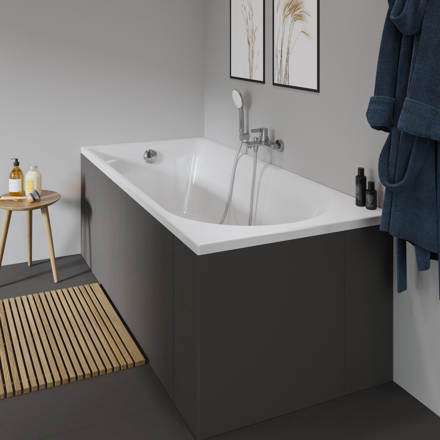 If properly cared for, acrylic bathtubs can be used for up to 50 years. That's why proper care is extremely important; it ensures that you can enjoy your acrylic bathtub for years to come. One of the practical things about it is that the material itself is resistant to dirt. The smooth and non-porous finish is extremely hygienic and easy to care for. In order to clean acrylic bathtubs, any deposits that start to develop should be removed regularly so your tub retains that silky sheen. All it takes is a simple wipe-down with a soft cloth or sponge and a mild cleaning agent.