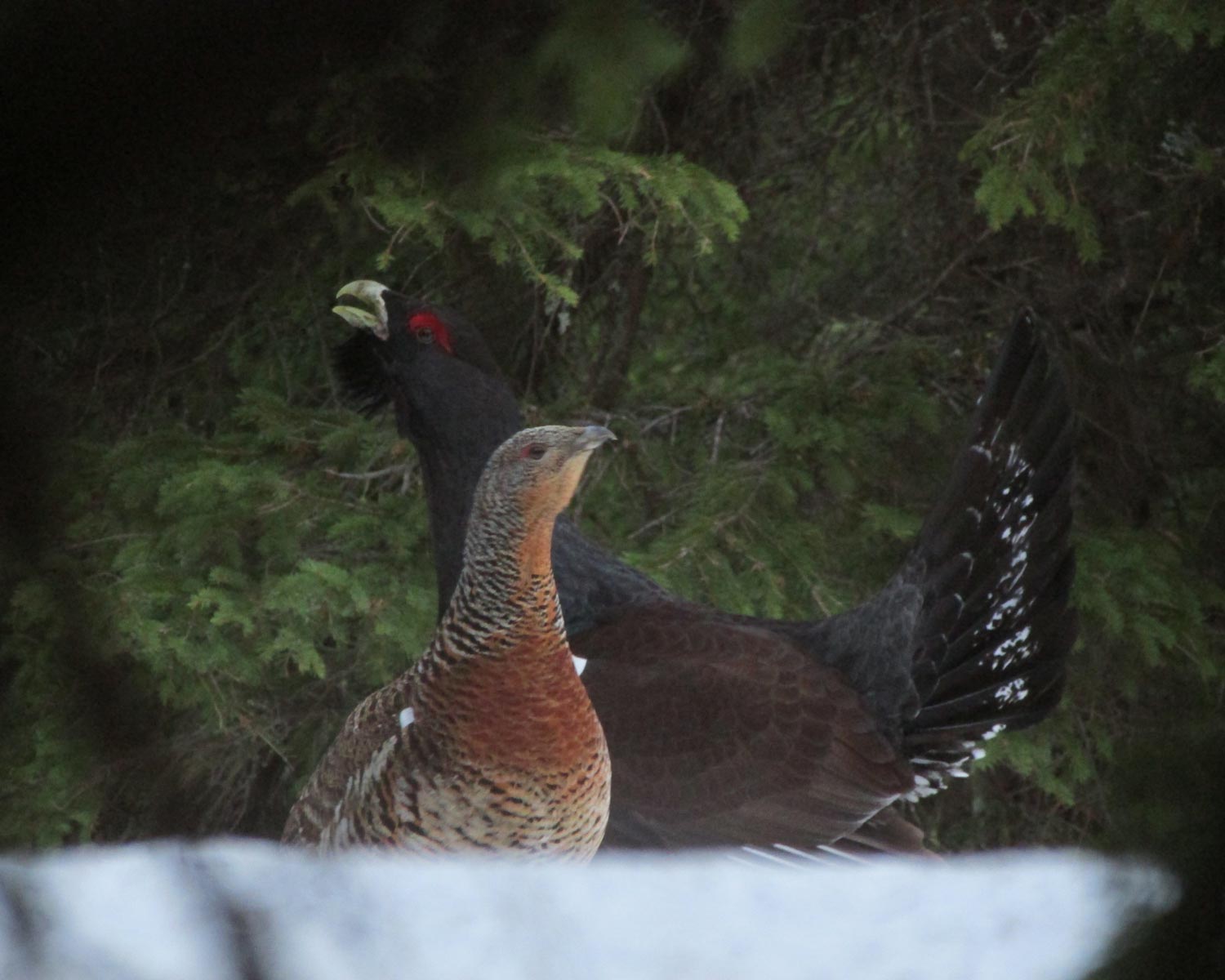 The wood grouse is quiet and shy by nature, which is why encounters with this bird are rare. However, there is one exception: wood grouses are spotted more frequently during the mating season between March and May. The male wood grouse is notorious for his ostentatious mating behavior, so he is best left alone during this period.