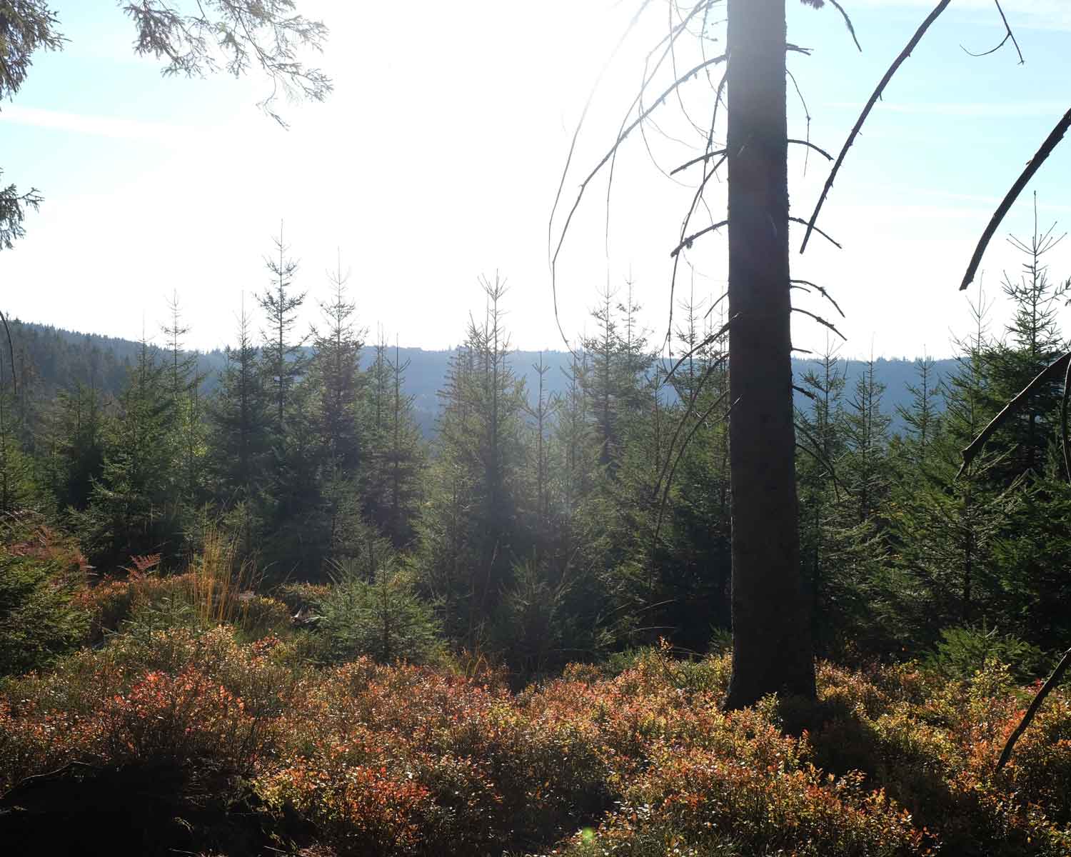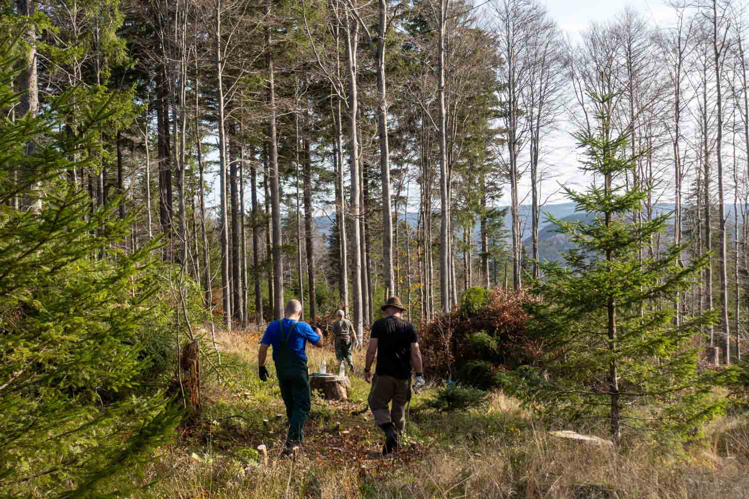 To halt the decline in wood grouse numbers in the Black Forest, Auerhuhn im Schwarzwald e. V. (or AiS for short) is creating a wood-grouse-friendly forest: freeing blueberry bushes from encroaching spruce saplings, removing obstacles on the ground, and creating urgently needed islands of light – there are many aspects to the urgently needed habitat management.