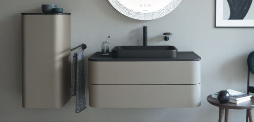 Gỗ tạo cảm giác dễ chịu, thanh lịch và dễ lau chùi. Sắc ấm của gỗ ngày càng trở nên phổ biến trong phòng tắm. Nhờ kết hợp với tủ chậu rửa và tấm lát gỗ, chậu rửa và bồn tắm đang dần trở thành những món nội thất trang trí. Khi được phối cùng tủ, giá treo tường, hay giá để đồ di động, thiết kế của phòng tắm sẽ có tính nhất quán nhờ sự hòa hợp của mọi thành phần trong căn phòng. Duravit cung cấp nhiều lựa chọn bề mặt như gỗ tự nhiên hay sơn mài, với các mẫu nội thất đặc thù cho môi trường sử dụng ẩm ướt, có khả năng kháng nước và hơi ẩm. Các cạnh viền không sử dụng PVC và có khả năng chống nước. Bề mặt sản phẩm được hoàn thiện kín tuyệt đối để không ngấm nước.